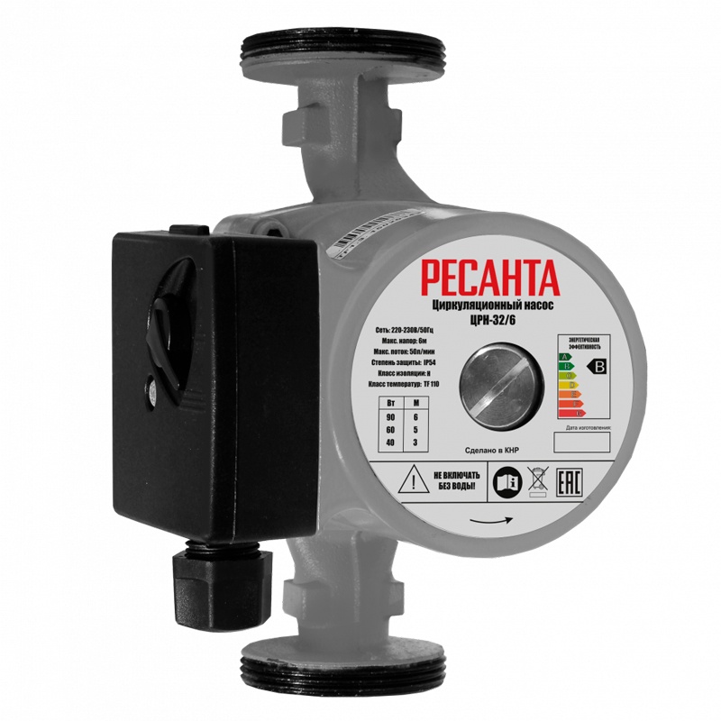 Циркуляционный насос Ресанта ЦРН-32/6 обеспечит поток воды 50 л/мин с напором 3, 5 или 6 м, повысит эффективность работы системы отопления, кондиционирования, водопровода.