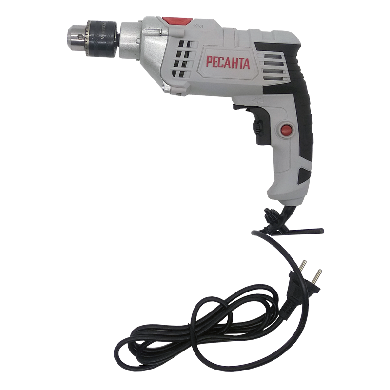 Частота вращения шпинделя настраивается с помощью колесика на пусковой клавише. Максимальная скорость составляет 3000 об/мин. При продолжительных работах можно зафиксировать кнопку включения с помощью блокиратора на рукоятке, чтобы не удерживать ее постоянно. Ударный механизм включается клавишей на верхней части корпуса.Ударная дрель Ресанта работает в режимах сверления и ударного долбления. В первом случае инструмент подойдет для обработки дерева и металла, во втором – для бетона и кирпича. Максимальный диаметр отверстий составляет 13 мм в металле и 25 мм в древесине.
