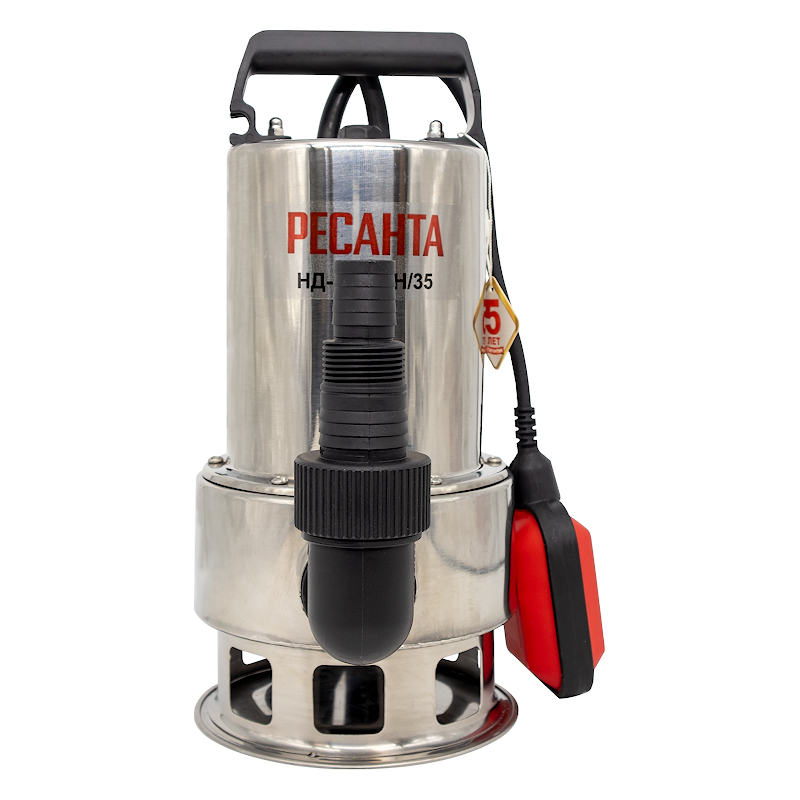 Ресанта НД-15500Н/35 с нижним забором воды имеет защиту от попадания внутрь песка, гальки или прочего мусора, позволяя перекачивать загрязненную воду с твердыми включениями размером до 35 мм. Поплавковый выключатель можно отрегулировать на определенный уровень включения и выключения. Когда воды в колодце или емкости остается мало, насос автоматически выключается.