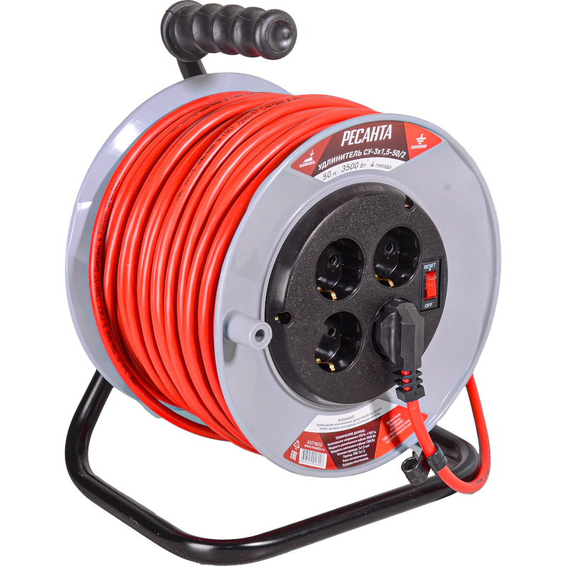 Ресанта СУ-3х1,5-50/2 (с выкл., 4 розетки) удлинитель силовой на катушке 61/118/12 Казани