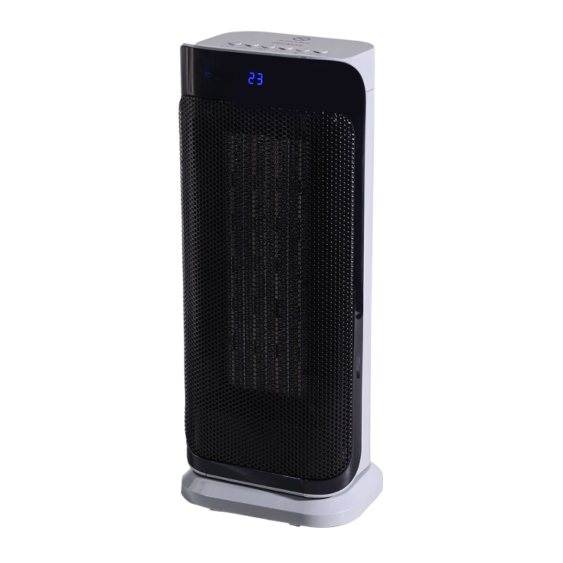 Напольный обогреватель с функцией вентилятора имеет керамический нагревательный элемент с максимальной мощностью 2000 Вт. Это позволяет быстро нагревать помещение площадью до 20м² квадратных метров с высотой потолков до 3м. При этом керамические пластины нагревателя не выделяют продукты горения и поглощают меньше кислорода и влажности по сравнению со стандартными нагревательными спиралями из металлических сплавов.